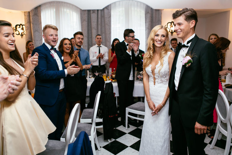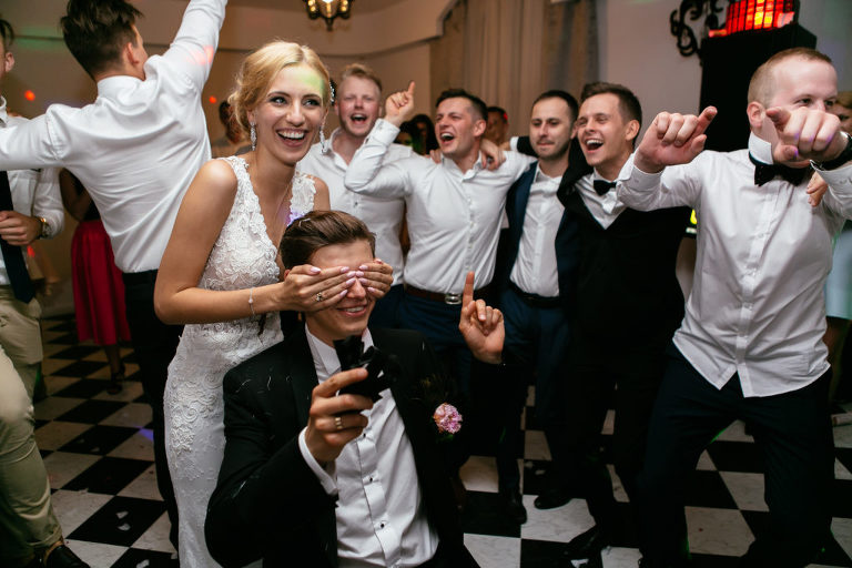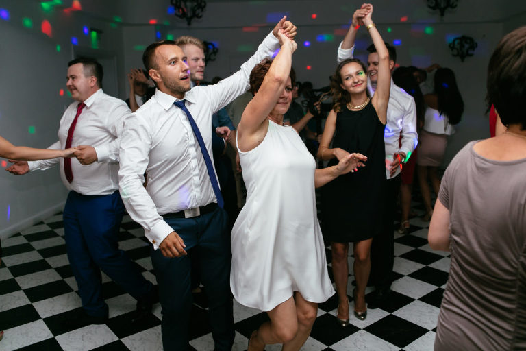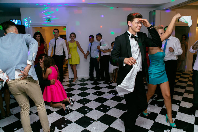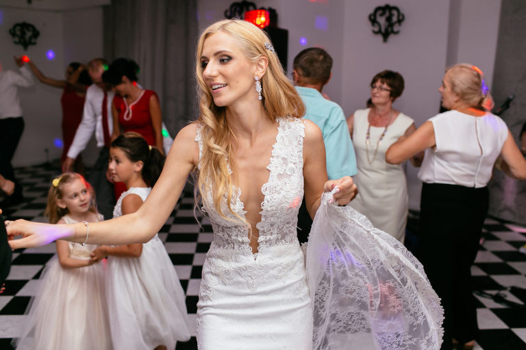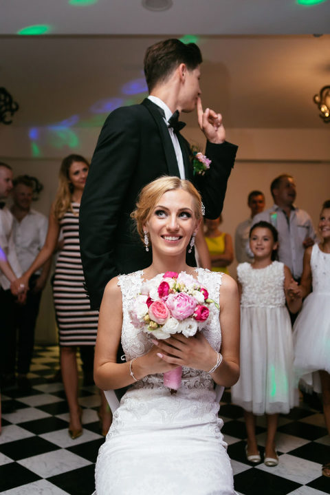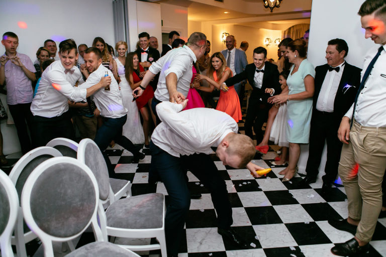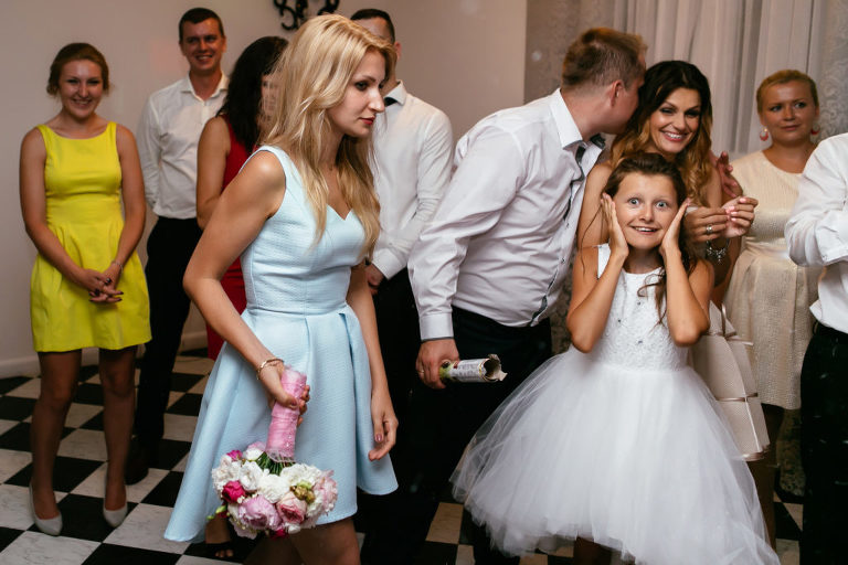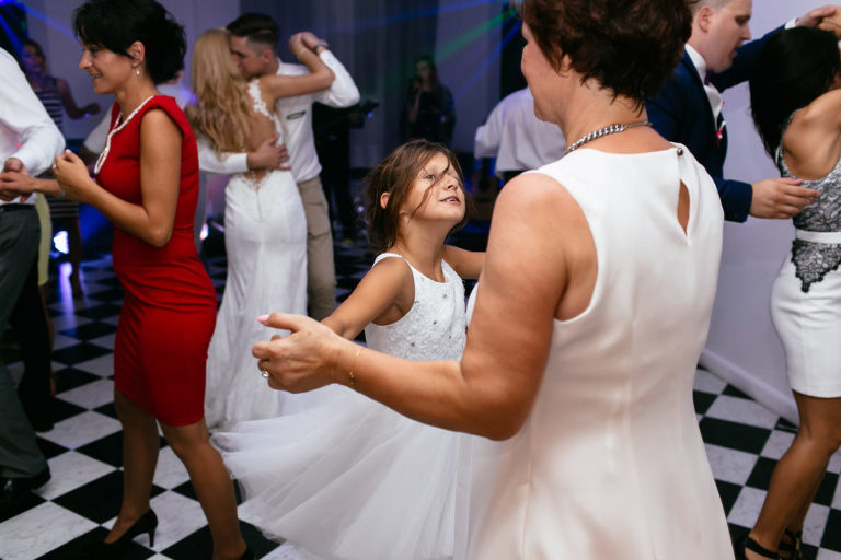 Ślub był piękny, ale z przyjęcia Karoliny i Kuby najlepiej w pamięć zapadła mi impreza – goście bawili się naprawdę świetnie, nie schodziłem z parkietu nawet na 5 minut, co na drugi dzień odwdzięczyło mi się solidnymi zakwasami 🙂 Goście cały czas wirowali, podskakiwali, krzyczeli i żartowali, ale udało się zrobić kilka ujęć, z których jestem naprawdę dumny. I tak, Młodym też się podobały 😉