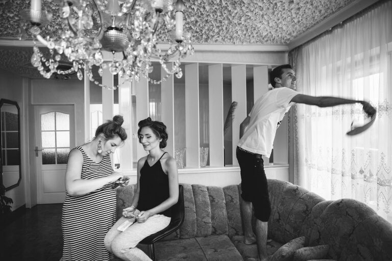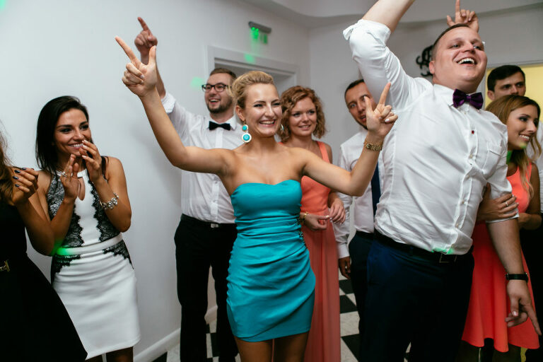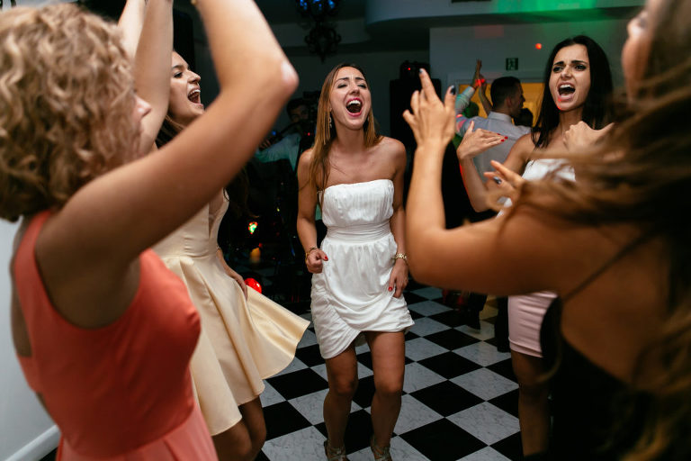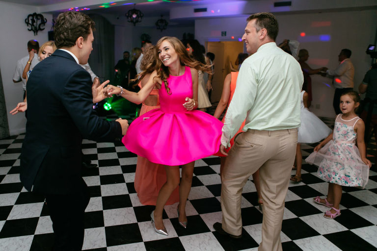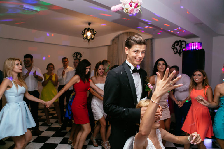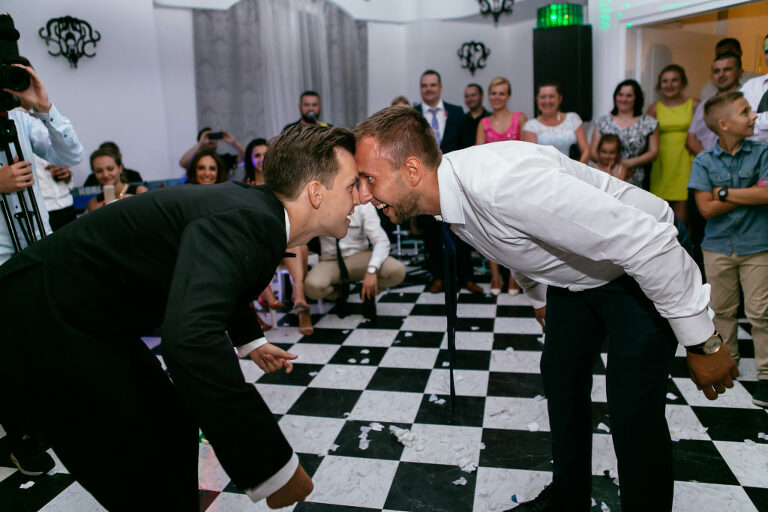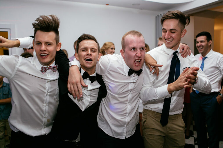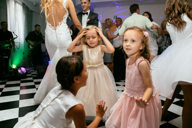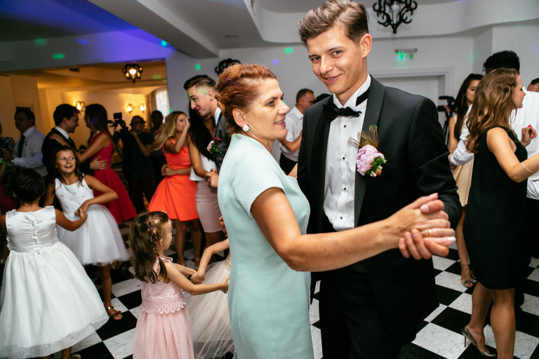 Ślub był piękny, ale z przyjęcia Karoliny i Kuby najlepiej w pamięć zapadła mi impreza – goście bawili się naprawdę świetnie, nie schodziłem z parkietu nawet na 5 minut, co na drugi dzień odwdzięczyło mi się solidnymi zakwasami 🙂 Goście cały czas wirowali, podskakiwali, krzyczeli i żartowali, ale udało się zrobić kilka ujęć, z których jestem naprawdę dumny. I tak, Młodym też się podobały 😉