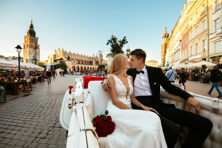 Ten ślub miał w sobie wszystko, co powinno mieć każde udane wesele: przepiękną Młodą Parę, udaną pogodę, świetny plener w postaci krakowskiego rynku i udaną imprezę do białego rana w Pałacu Lancon – o takim klimacie marzy chyba każdy fotograf ślubny. Kraków to miejsce, które rozważasz na wesele? Wiesz, gdzie mnie szukać 😉